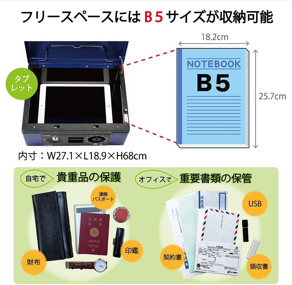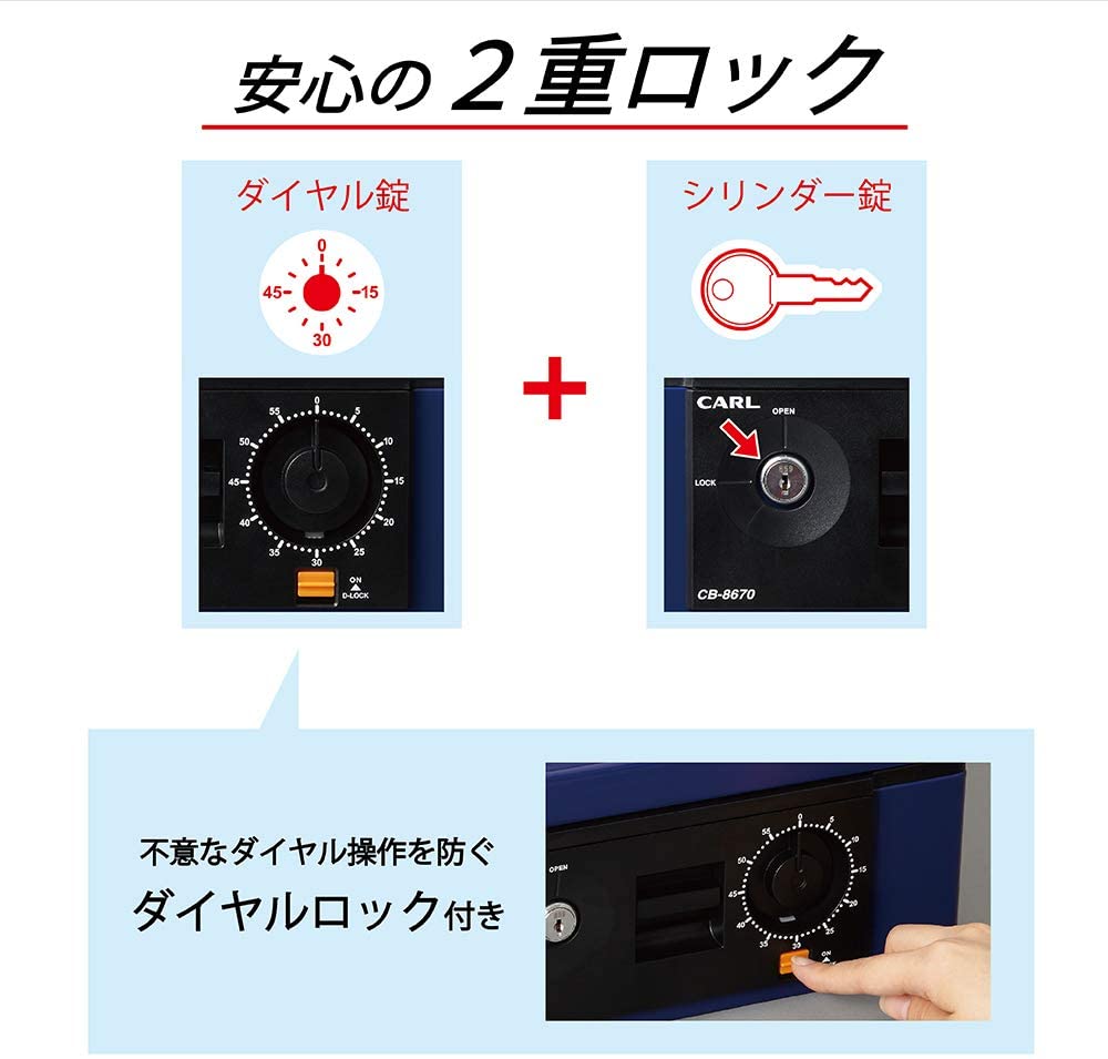 ● Main Features: Dial lock function, double tier bill tray, coin counter tray, shatterproof coins, can store B5 documents, 2 keys (cylinder lock)